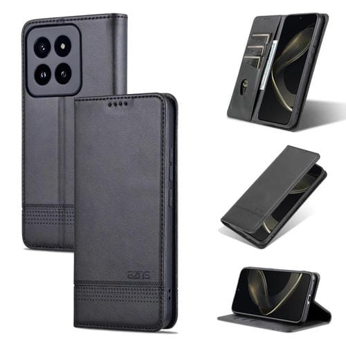 Para Xiaomi 14 Pro Azns Funda De Teléfono De Cuero Con Tapa Con Textura De Pantorrilla Magnética (Negro)