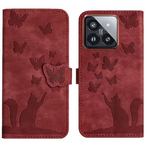 Para Xiaomi 14 Pro Butterfly Cat Embossing Flip Funda De Cuero Para Teléfono (Rojo)