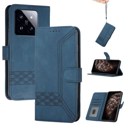 Para Xiaomi 14 Pro Cubic Skin Feel Flip Funda De Cuero Para Teléfono (Azul)