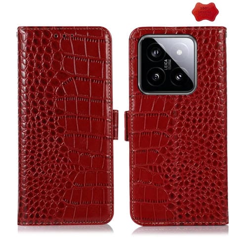 Para Xiaomi 14 Pro Funda Para Teléfono De Cuero De Vaca Con Capa Superior De Cocodrilo (Rojo)