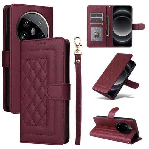 Para Xiaomi 14 Ultra Diamond Lattice Funda De Cuero Para Teléfono Con Tapa (Rojo Vino)