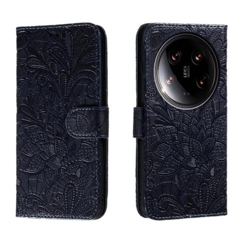 Para Xiaomi 14 Ultra Lace Flower Embossed Flip Funda De Cuero Para Teléfono (Azul Oscuro)