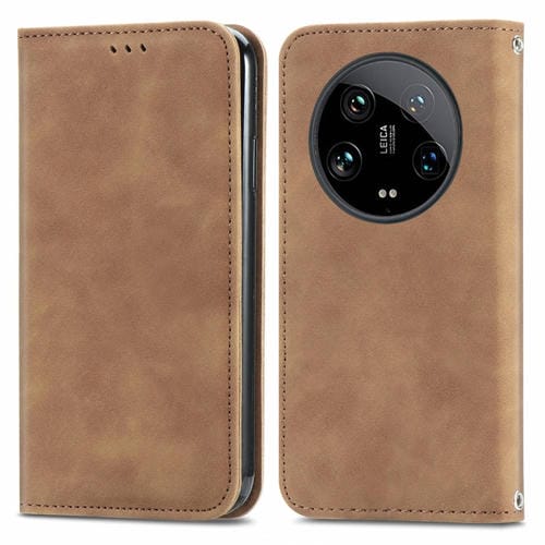 Para Xiaomi 14 Ultra Retro Skin Feel Funda De Teléfono De Cuero Con Tapa Magnética (Marrón)