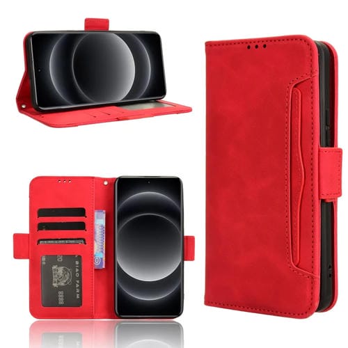 Para Xiaomi 14 Ultra Skin Feel Becerro Textura Ranuras Para Tarjetas Funda De Cuero Para Teléfono (Rojo)