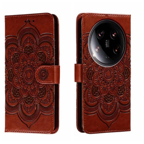 Para Xiaomi 14 Ultra Sun Mandala Funda De Cuero Para Teléfono Con Patrón En Relieve (Marrón)