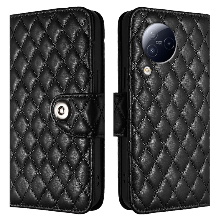 Para Xiaomi Civi 3 Funda de Cuero con Tapa con Textura Rombal y Cordón (Negro)