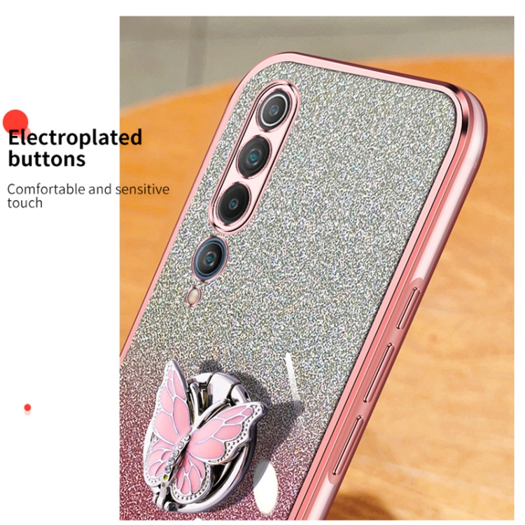 Para Xiaomi Mi 10 Funda para Teléfono de TPU con Soporte de Mariposa con Brillo Degradado Plateado (Azul Sierra)