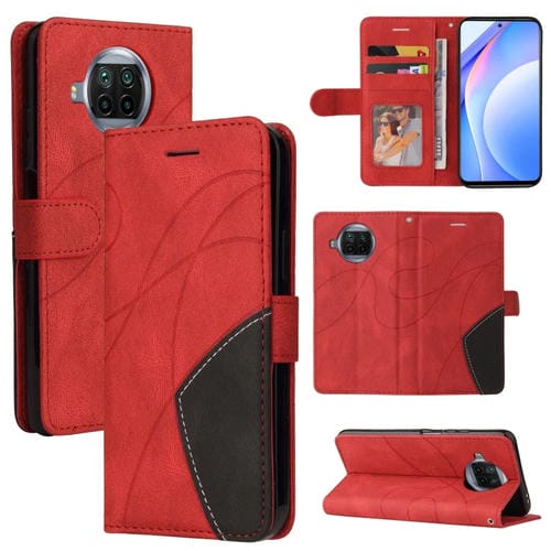 Para Xiaomi Mi 10T Lite 5G Doble Color Spliging Horizontal Flip Pu Funda de Cuero con Soporte y Ranuras para Tarjetas y Billetera (Rojo)