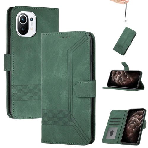 Para Xiaomi Mi 11 Cúbica Cúbica Siente la Caja del Teléfono de Cuero con Flip (Verde Oscuro)