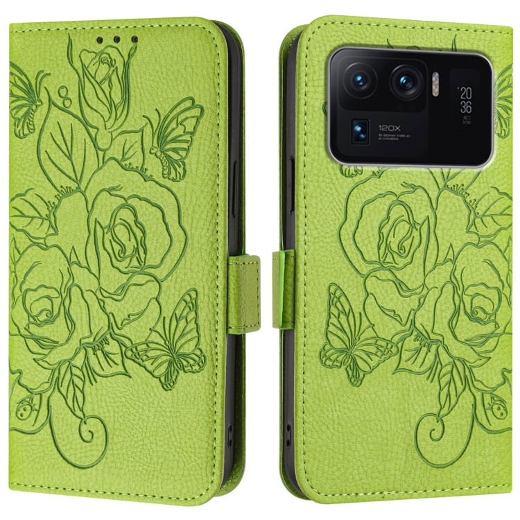 Para Xiaomi Mi 11 Ultra Embossed Rose Rfid Funda de Cuero Antirrobo para Teléfono (Verde)