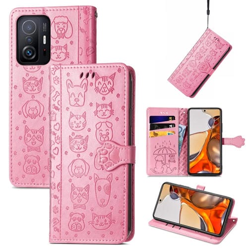 Para Xiaomi Mi 11T / 11T Pro Cat y Funda de Cuero Horizontal Horizontal Horizontal Funda con Titular & Tarjeta Slot & Wallet & Lanyard (Rosa)