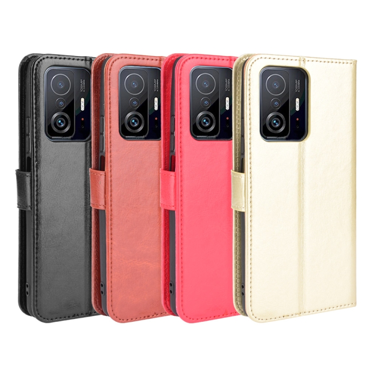 Para Xiaomi MI 11T / 11T Pro Crazy Horse Texture Horizontal Flip Funda de cuero con soporte y ranuras para tarjetas y cordón (oro)