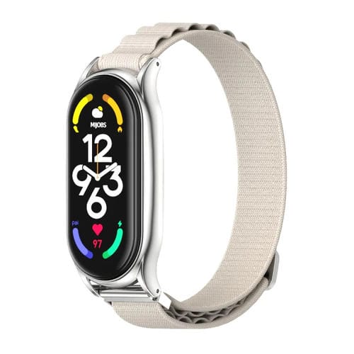 Banda de Reloj de Nylon para Xiaomi Mi Band 6/5/4/3 Mijobs Plus Transpirable (Gris Plateado)