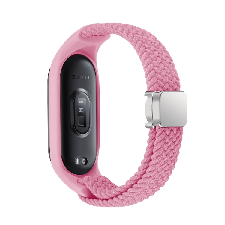 Correa de Reloj para Xiaomi Mi Band 7/6/5/4/3 con Hebilla Magnética y Bucle Trenzado de Nailon (Rosa)