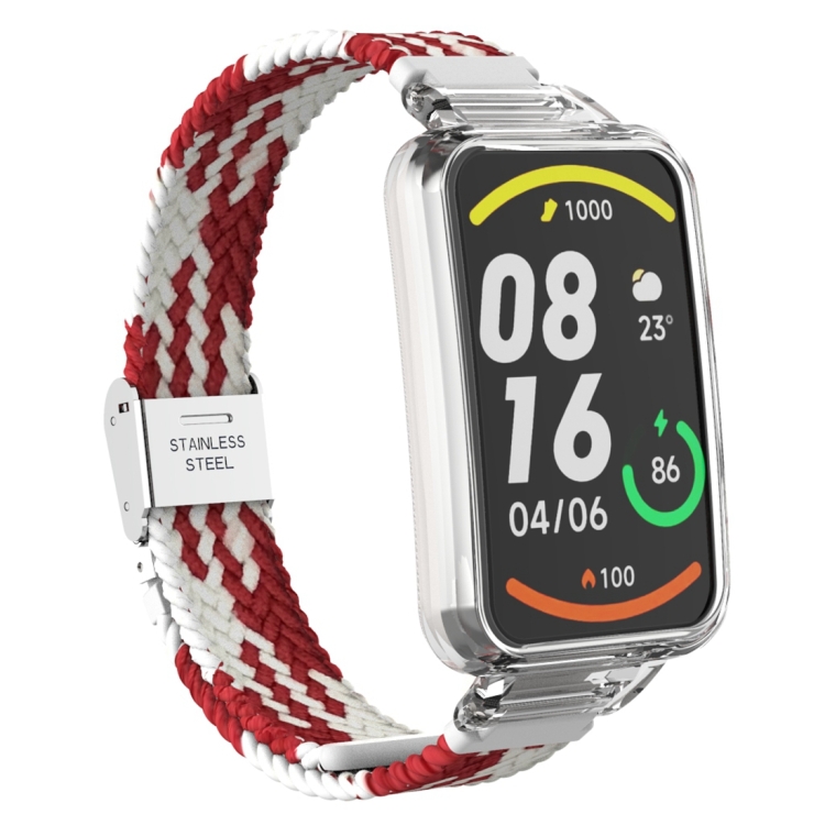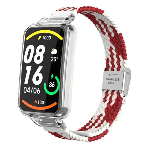 Correa para Xiaomi Mi Band 7 Pro Reloj Integrada con Hebilla Nailon Trenzado (Rojo Blanco)
