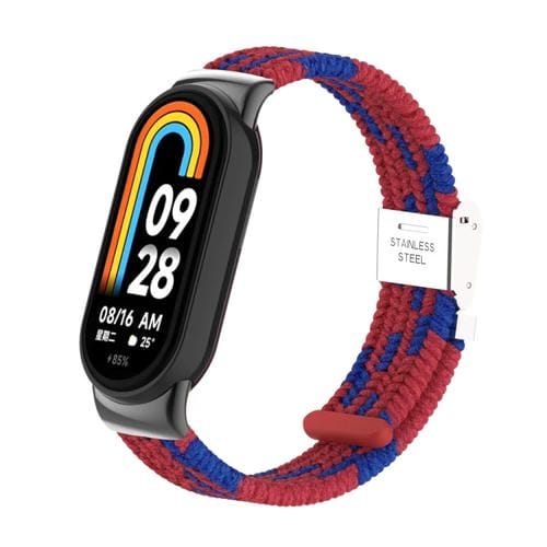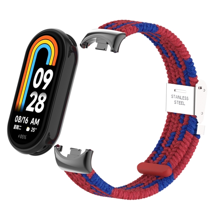 Correa para Xiaomi Mi Band 8/8 Nfc con Metal Head y Hebilla de Acero Trenzado de Nailon (Rojo Azul)