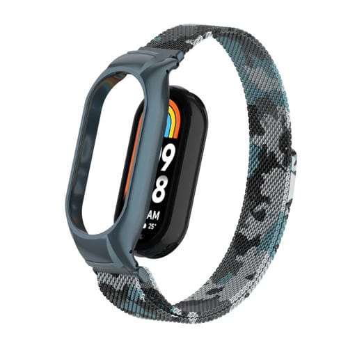 Caja de Metal Integrada + Banda Magnética Milanesa para Xiaomi Mi Band 8 (Blanco)