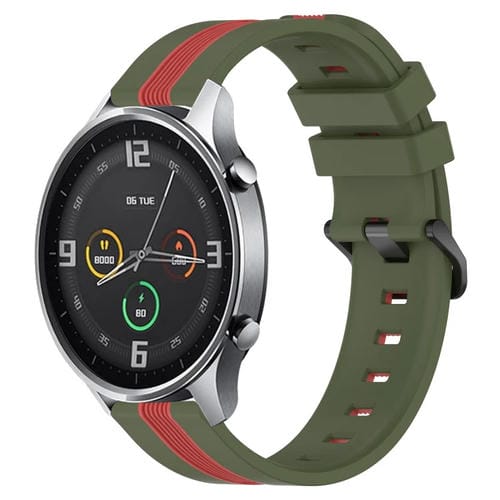 Banda de Reloj Xiaomi Mi Watch Color 22mm Silicona Dos Colores Vertical (Verde Militar + Rojo)