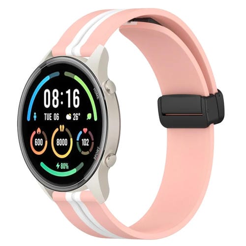 Correa de Reloj Xiaomi Mi Watch Sport 22mm Silicona con Cierre Magnético Plegable (Rosa + Blanco)