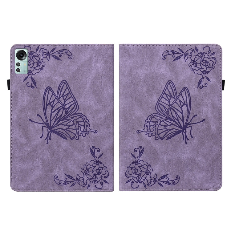 Para Xiaomi Pad 5 Pro 12.4 Funda para Tableta de Cuero con Relieve de Flor de Mariposa (Púrpura)