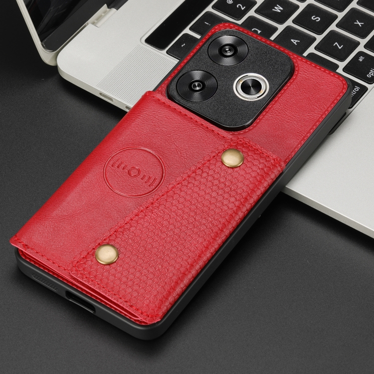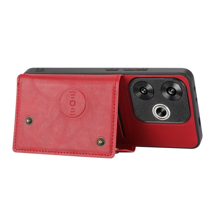 Para Xiaomi Poco F6 Funda Magnética para Teléfono con Ranuras para Tarjetas con Doble Hebilla (Rojo)