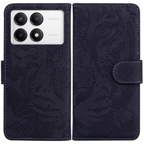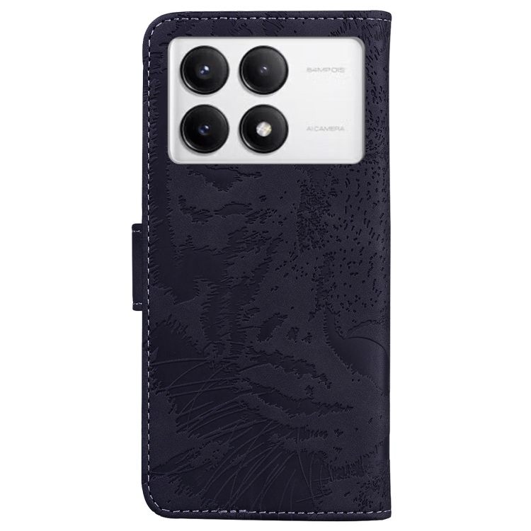 Para Xiaomi Poco F6 Pro Tiger Estampado En Relieve Funda de Cuero con Tapa para Teléfono (Negro)