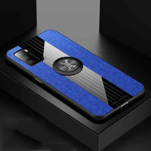 Para Xiaomi Poco M3 Xinli Paño de Costura Textura TPU Funda Telefónica con Soporte de Anillo (Azul)
