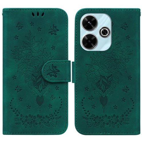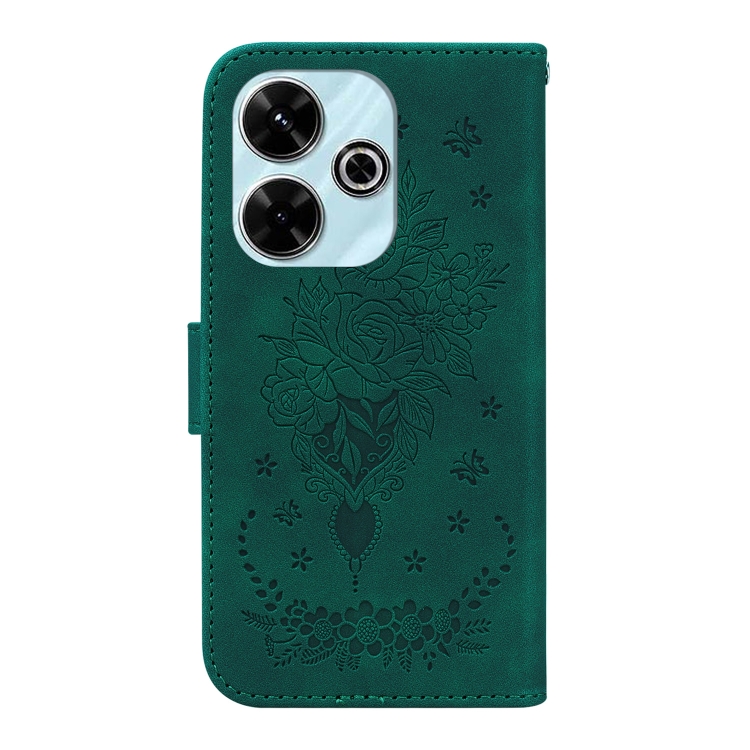 Para Xiaomi Poco M6 4G Butterfly Rose Funda de Cuero para Teléfono En Relieve (Verde)