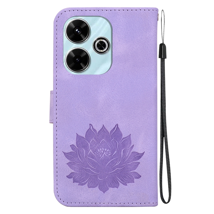 Para Xiaomi Poco M6 4G Funda de Teléfono de Cuero con Relieve de Loto (Púrpura)
