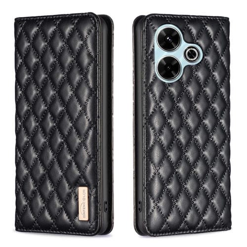 Para Xiaomi Poco M6 4G / Redmi 13 4G Funda para Teléfono con Tapa de Cuero Magnético Diamond Lattice (Negro)