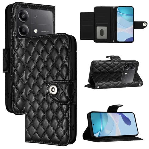 Para Xiaomi Poco X6 Neo Funda para Teléfono con Tapa de Cuero con Textura Rómbica y Cordón (Negro)