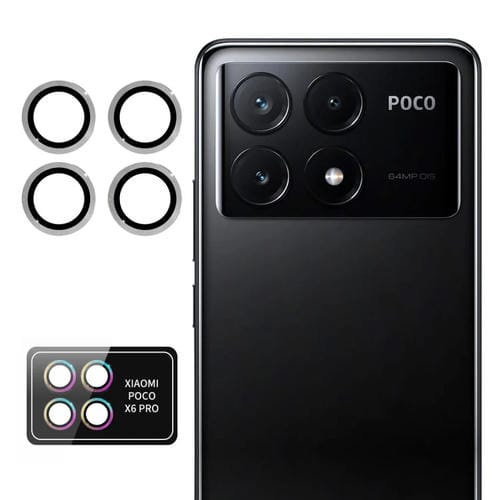 Para Xiaomi Poco X6 Pro Enkay Hat-Prince 9H Lente de Cámara Trasera Película de Vidrio Templado de Aleación de Aluminio (Plata)