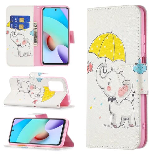 Para Xiaomi Redmi 10 Coloreado Dibujo Patrón Horizontal Funda de Cuero con Soporte y Tragamonedas y Billetera (Elefante para guas)