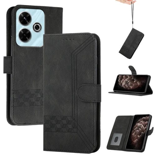 Para Xiaomi Redmi 13 4G Cubic Skin Feel Funda de Cuero con Tapa para Teléfono (Negro)
