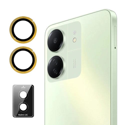 Para Xiaomi Redmi 13C Enkay Hat-Prince 9H Lente de Cámara Trasera Película de Vidrio Templado de Aleación de Aluminio (Dorado)