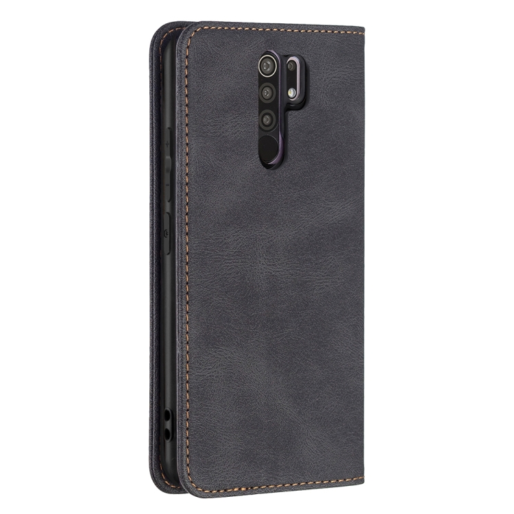 Para Xiaomi Redmi 9 Bloqueo de RFID Magnetic Blocking Funda de cuero antirrobo con soporte y ranuras para tarjeta y billetera (Negro)