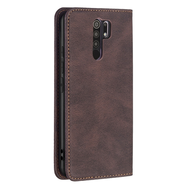 Para Xiaomi Redmi 9 Bloqueo de RFID Magnetic RFID Funda de cuero antirrobo con soporte y ranuras para tarjetas y billetera (Marrón)