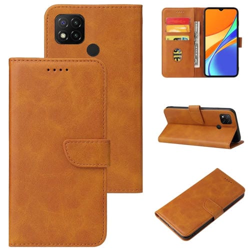 Para Xiaomi Redmi 9C Texture de Textura de Calfe Heble Caja de Cuero Horizontal Flip con Soporte y Tragamonedas y Billetera (Caqui)
