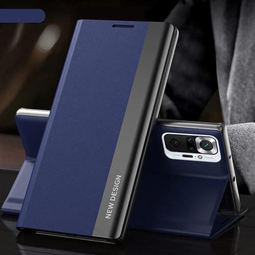 Para Xiaomi Redmi Note 10 5G / Poco M3 Pro Side Electroplated Magnetic Horizontal Horizontal Funda de Cuero con Soporte (Azul)