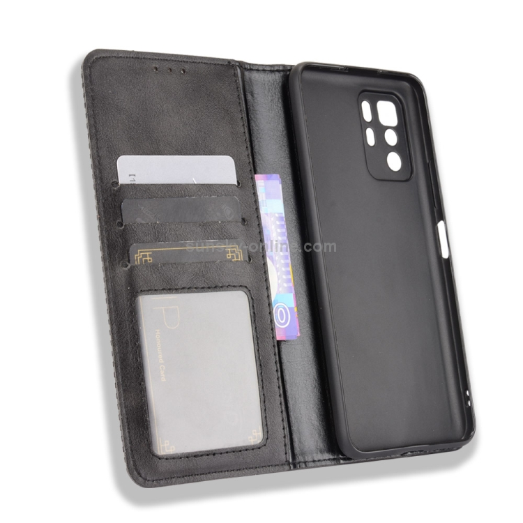 Para Xiaomi Redmi Note 10 Pro 5G / POCO X3 GT Hebilla magnética Retro Crazy Horse Texture Horizontal Flip Funda con soporte y ranuras para tarjetas (Negro)