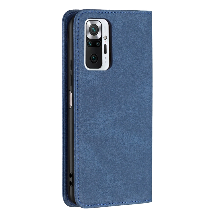 Para Xiaomi Redmi Note 10 Pro / Note 10 Pro Max Magnetic RFID Bloqueo de RFID Funda de cuero antirrobo con soporte y ranuras para tarjeta y billetera (azul)