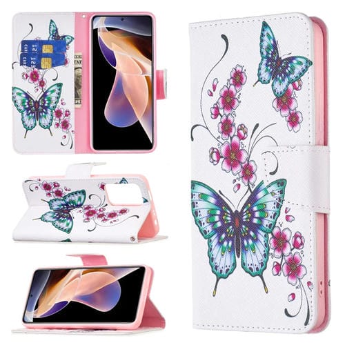 Para Xiaomi Redmi Note 11 Pro / 11 Pro + Dibujo de Publo de Dibujo Cuche de Cuero de Cuero (Mariposa de la Flor de Durazno)