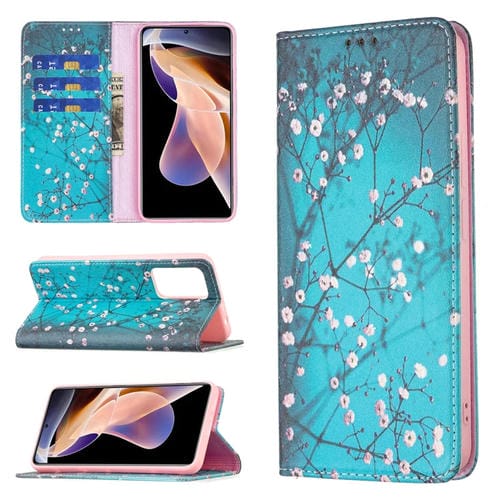 Para Xiaomi Redmi Note 11 Pro / 11 Pro + Patrón de Dibujo de Color Invisible Magnético Pu de Cuero de la Pu (Flor de Ciruela)