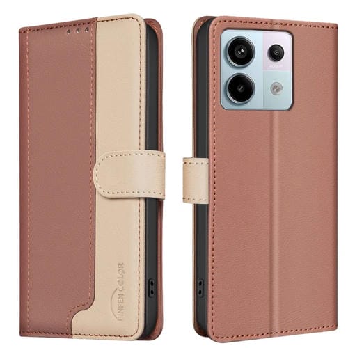 Para Xiaomi Redmi Note 13 Pro 5G Funda de Teléfono de Cuero Antirrobo Rfid a Juego de Colores (Marrón)