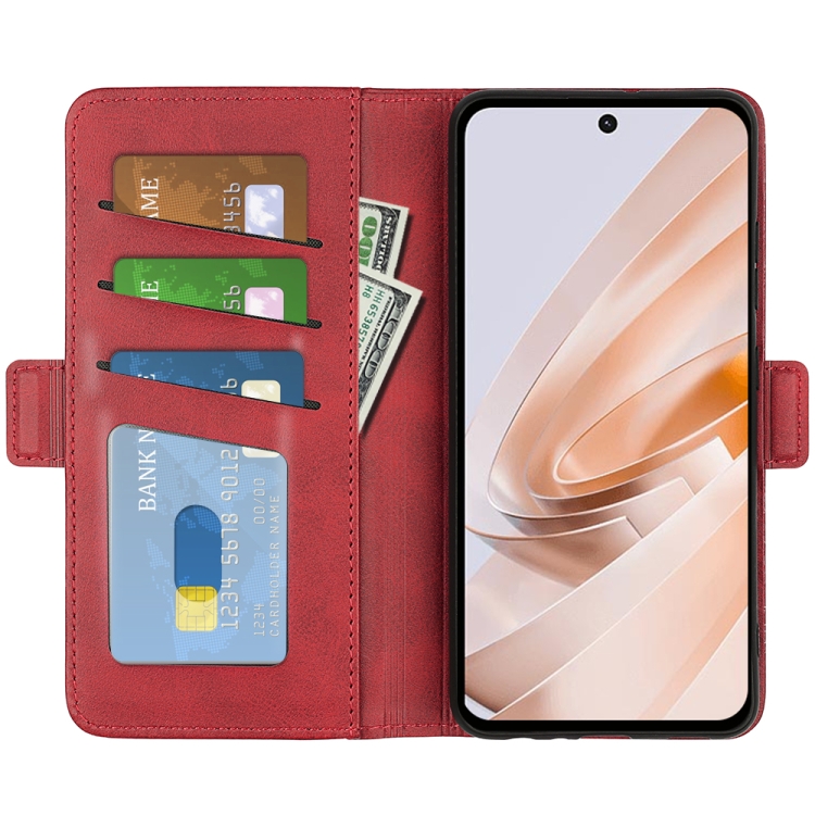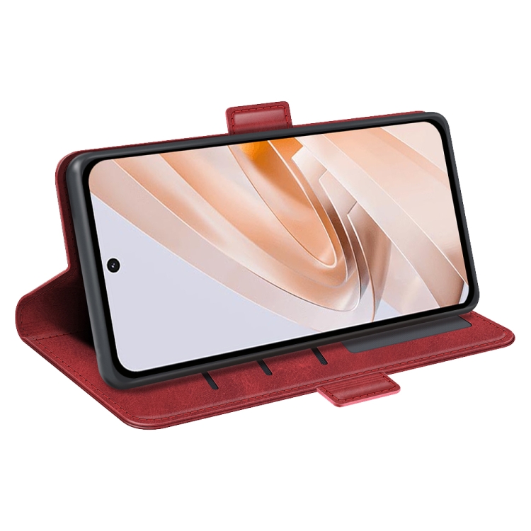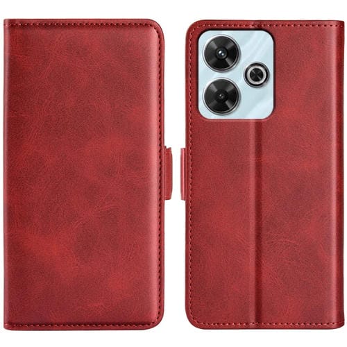 Para Xiaomi Redmi Note 13R 5G Funda para Teléfono de Cuero con Tapa Horizontal con Hebilla Magnética de Doble Lado (Rojo)