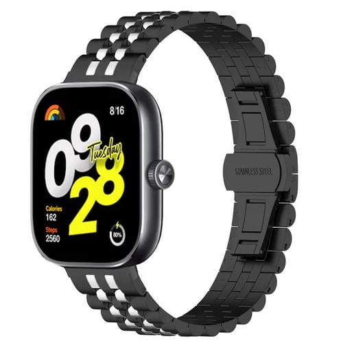 Correa de Metal para Xiaomi Redmi Watch 4 con Hebilla de Mariposa de Cinco Cuentas (Negro Plateado)