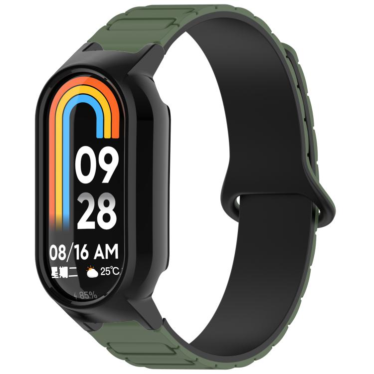 Para Xiaomi Smart Band 9/9 NFC Watch Case Correa de reloj de silicona magnética en forma de I integrada (verde, negro y negro)
