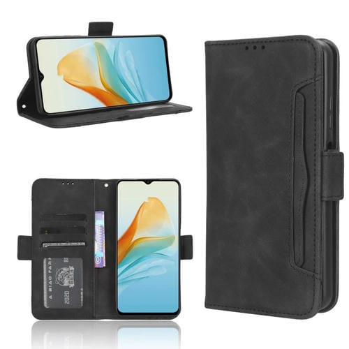 Funda de Cuero para ZTE Axon 40 Lite con Ranuras para Tarjetas y Textura Becerro (Negro)