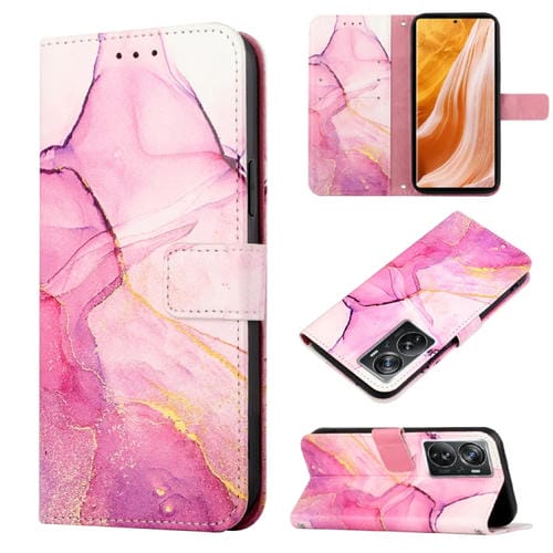 Funda para ZTE Axon 40 Pro Pt003 con Tapa de Cuero y Patrón de Mármol (Rosa, Púrpura, Oro)