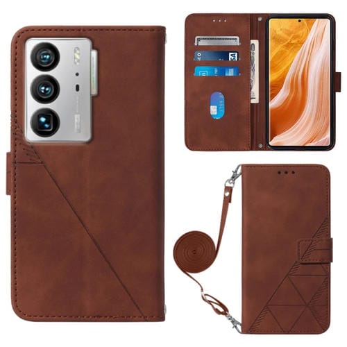 Funda de Cuero para ZTE Axon 40 Ultra Crossbody 3D con Tapa En Relieve (Marrón)